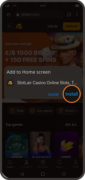 Go to the SlotLair homepage and tap three dots to open the browser menu.